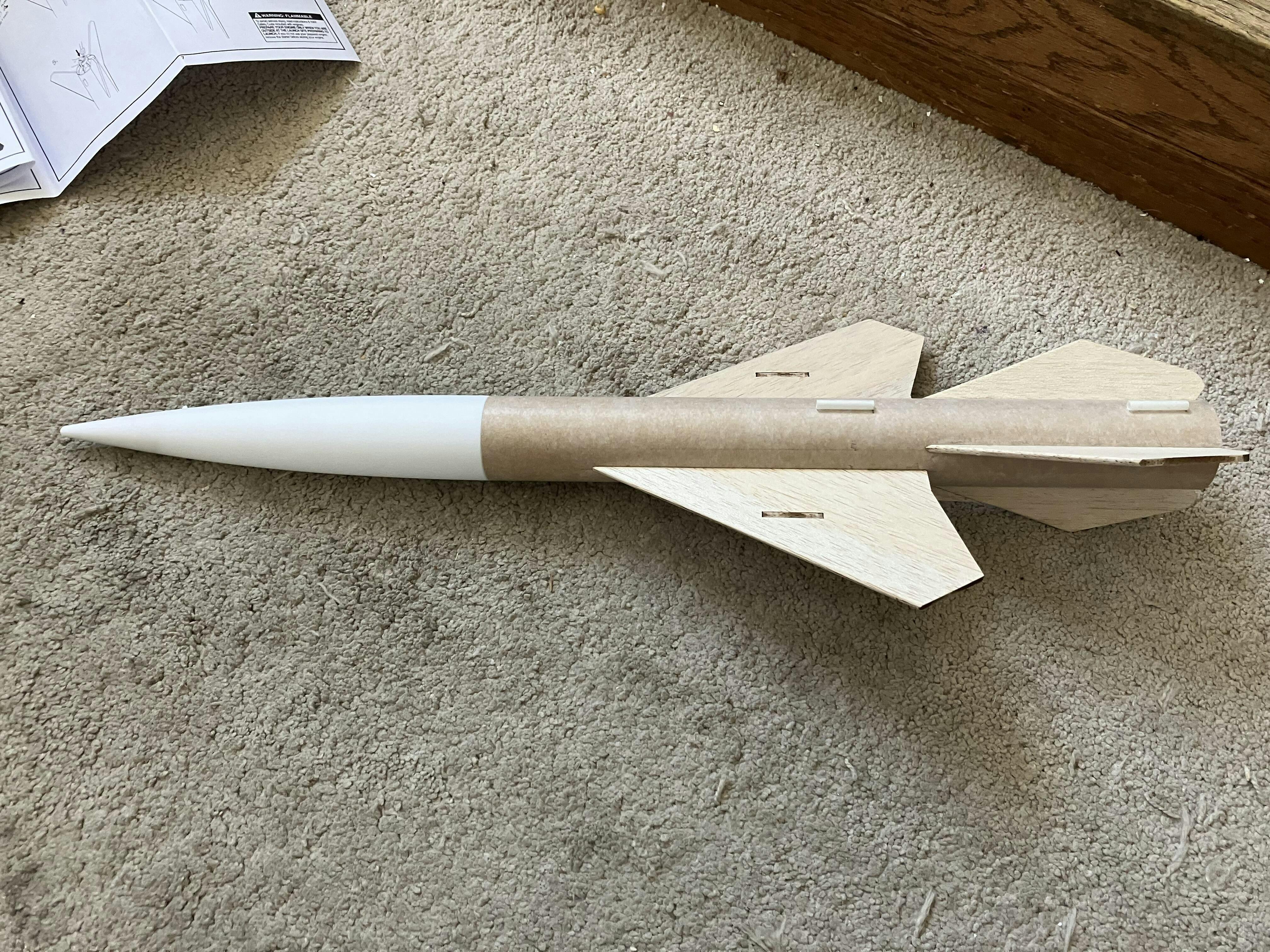 Plataforma de lanzamiento Estes Porta-Pad II y controlador de lanzamiento de haz de electrones, motores de cohete modelo Estes, arrancadores y guata de recuperación.