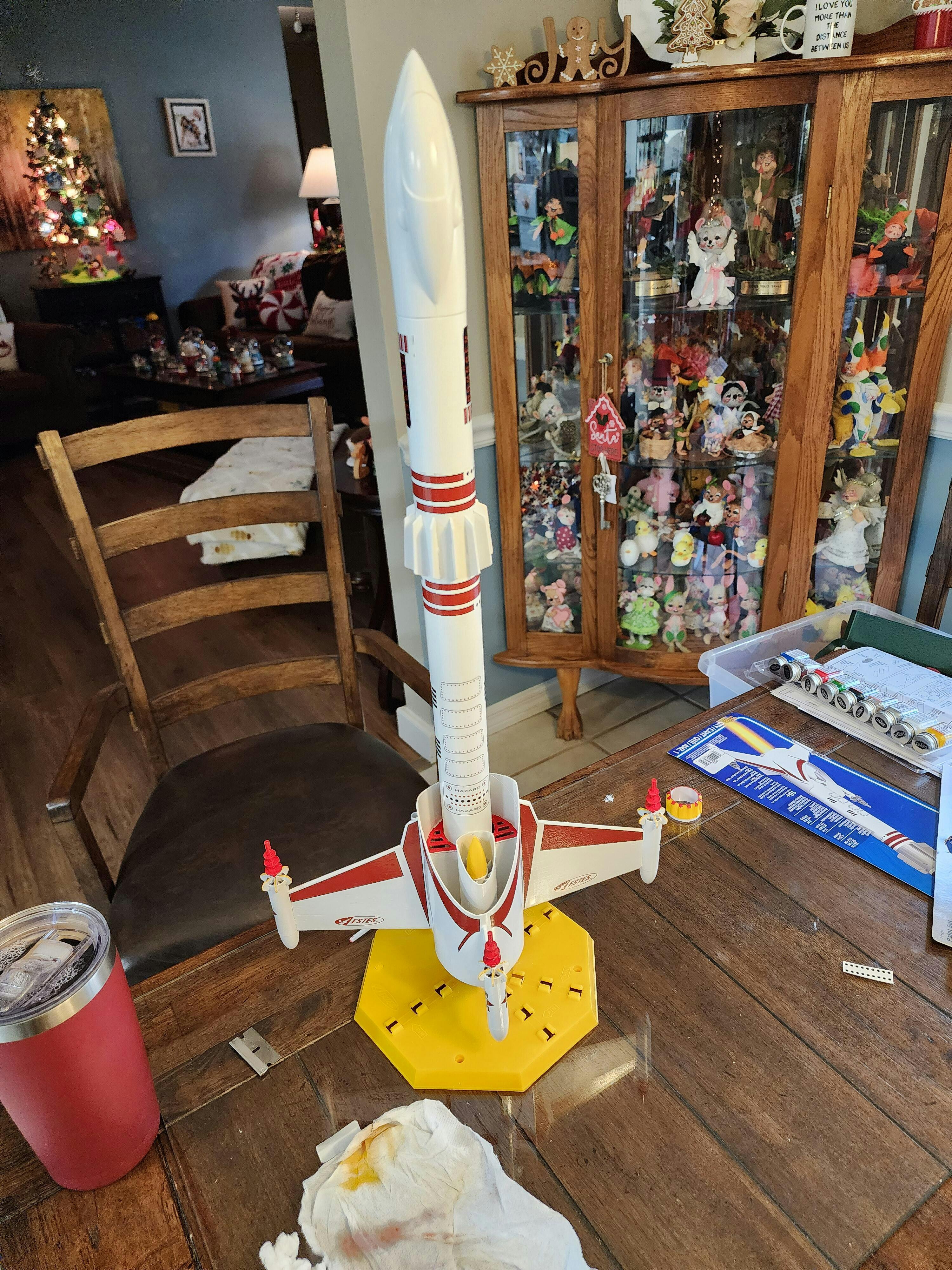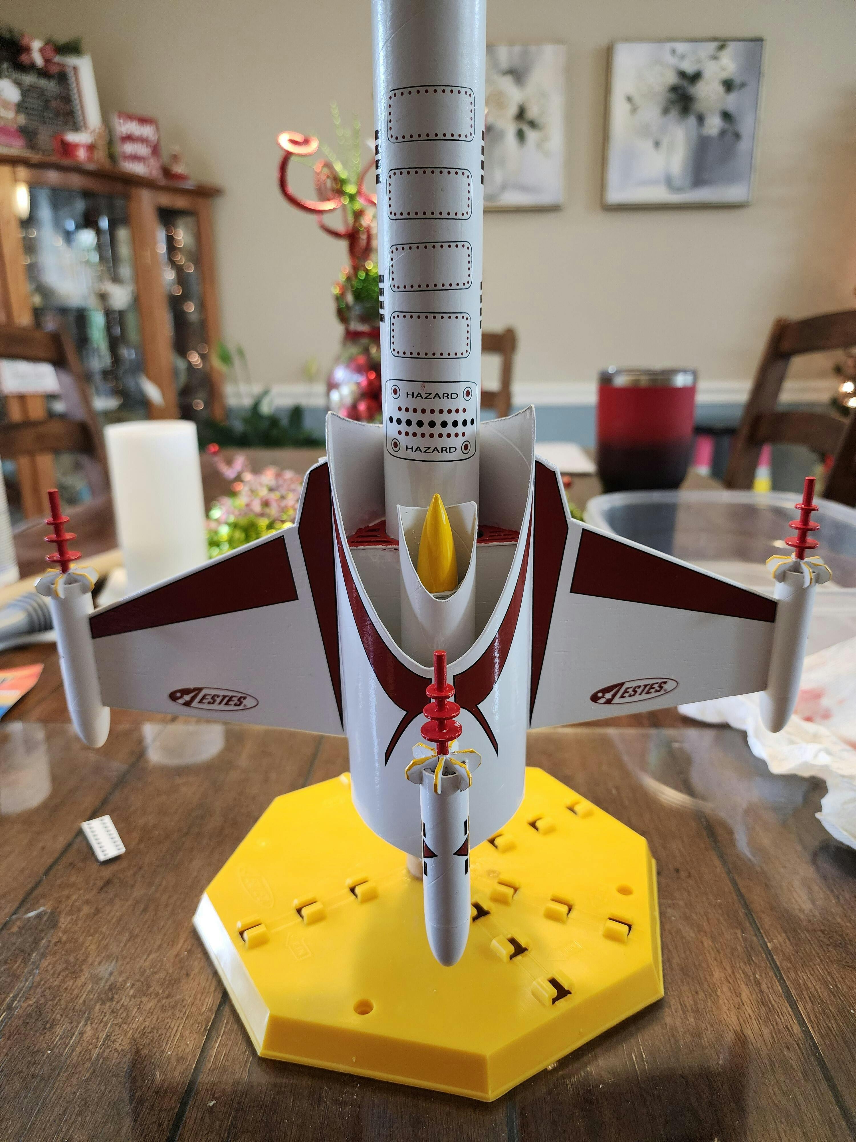 Plataforma de lanzamiento Porta-Pad II y controlador de lanzamiento de haz de electrones, varilla de lanzamiento MAXI™ de dos piezas de 3/16", motores de cohete modelo Estes, arrancadores y guata de recuperación, y cuatro baterías alcalinas AA de 1,5 V de alta calidad (se venden por separado).