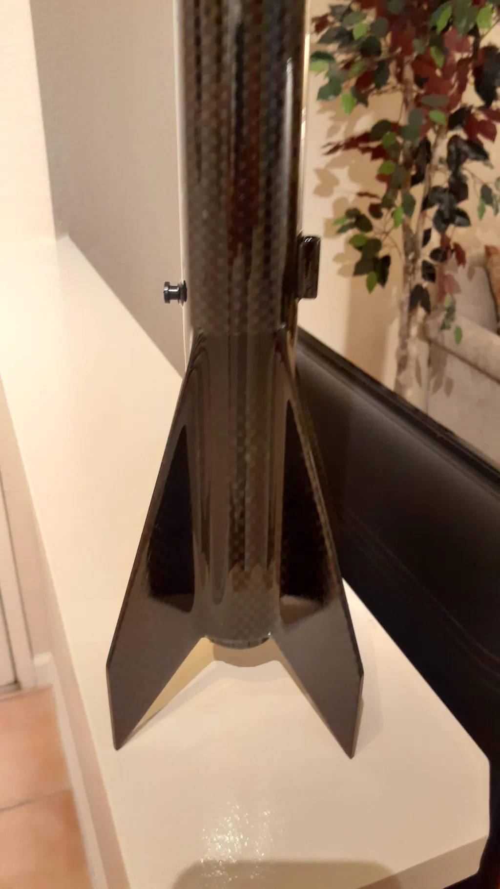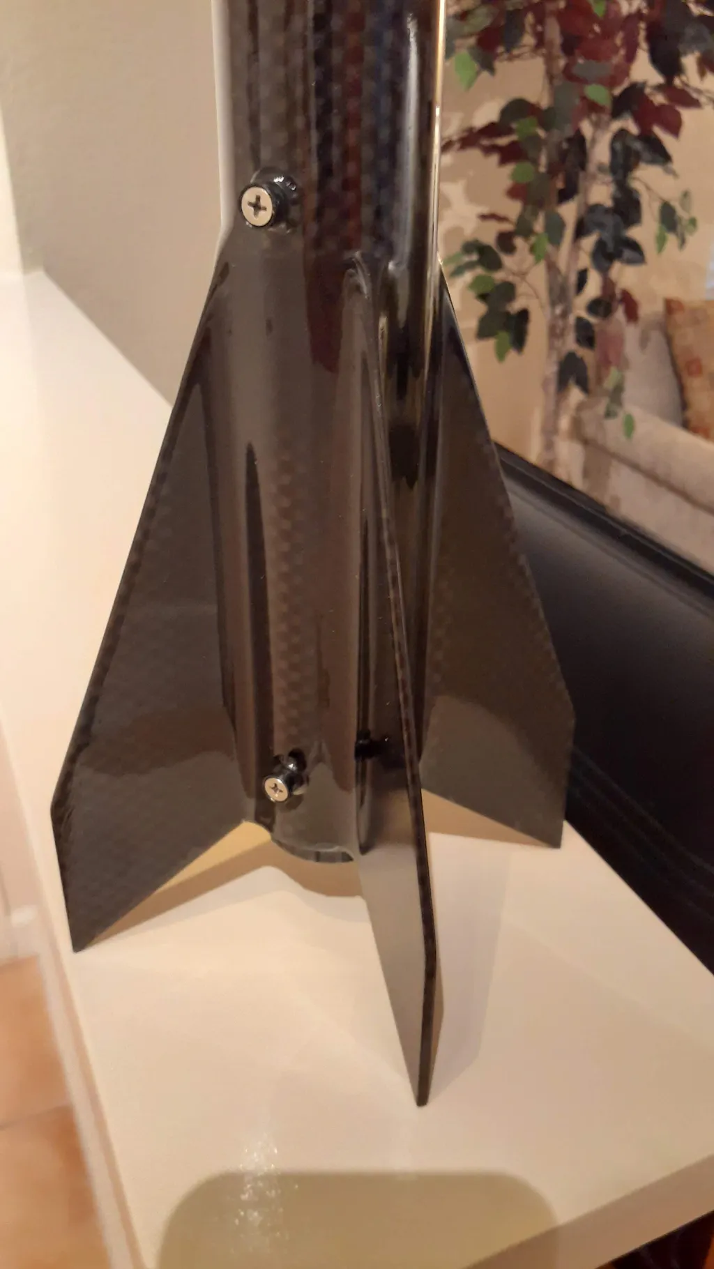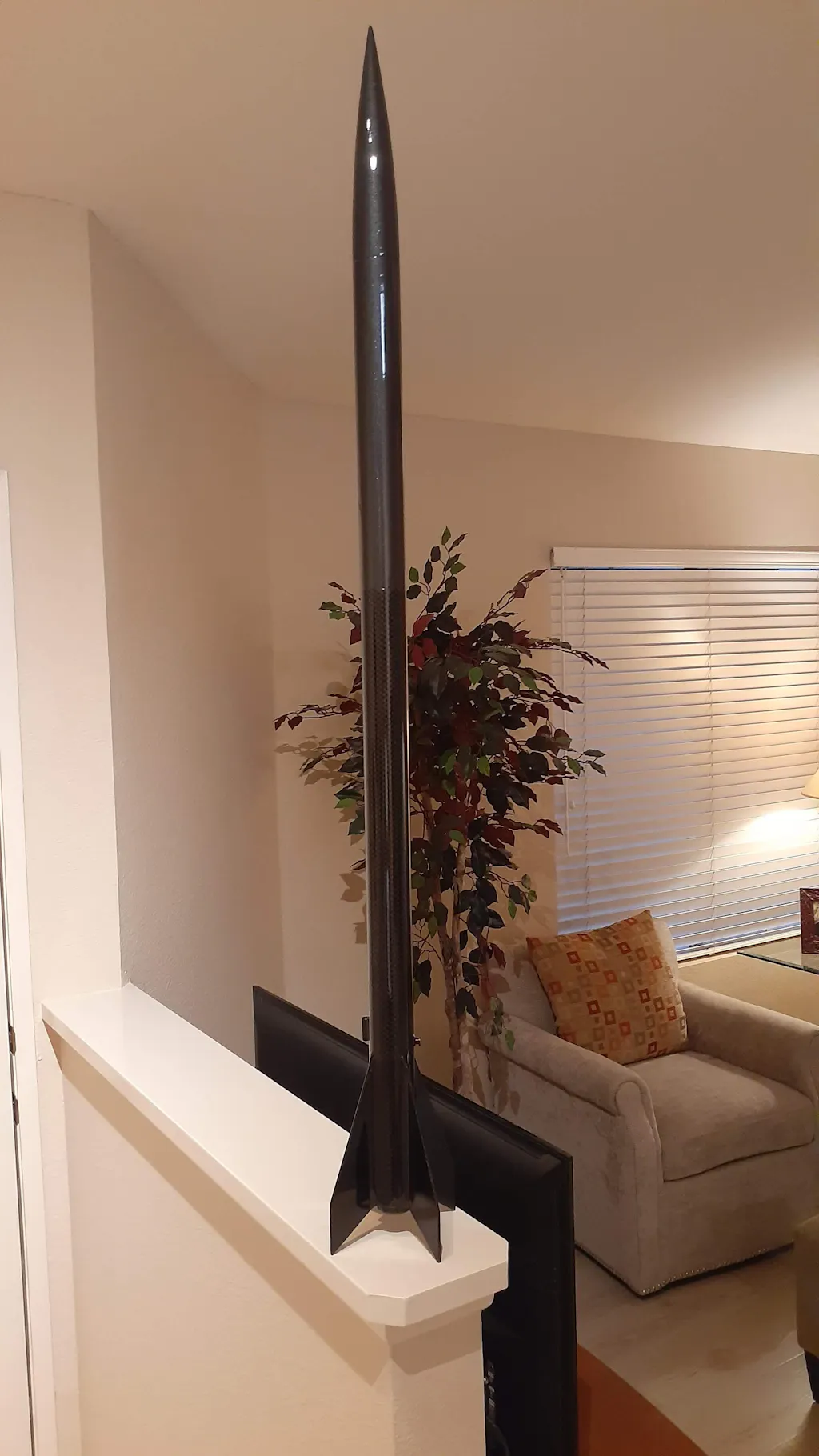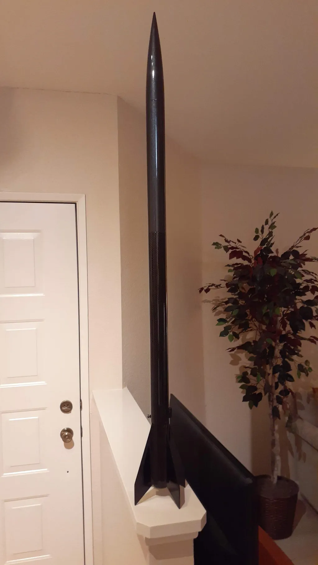 At over four feet tall, Lil’ Spite commands attention with its slim 2-inch diameter body and dramatic carbon fiber fin decals. The look is directly inspired by Xyla’s signature rocket build, complete with sleek black styling that emphasizes speed and strength. Laser-cut plywood fins and an 18-inch rip stop parachute complete the build, ensuring both durability and reliable recovery.
